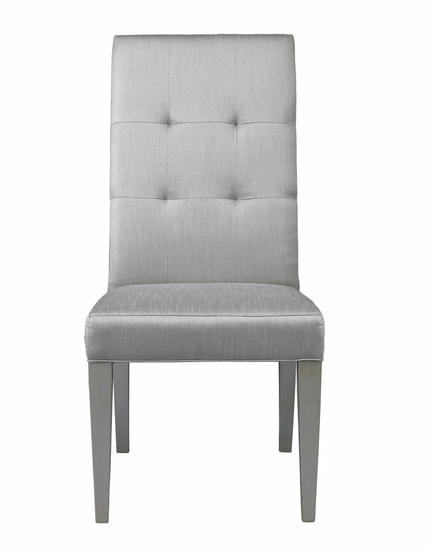 Side chair with taupe fabric and newport finish is the perfect combination for your dining area to give it a modern, sleek look.