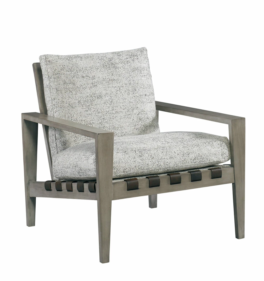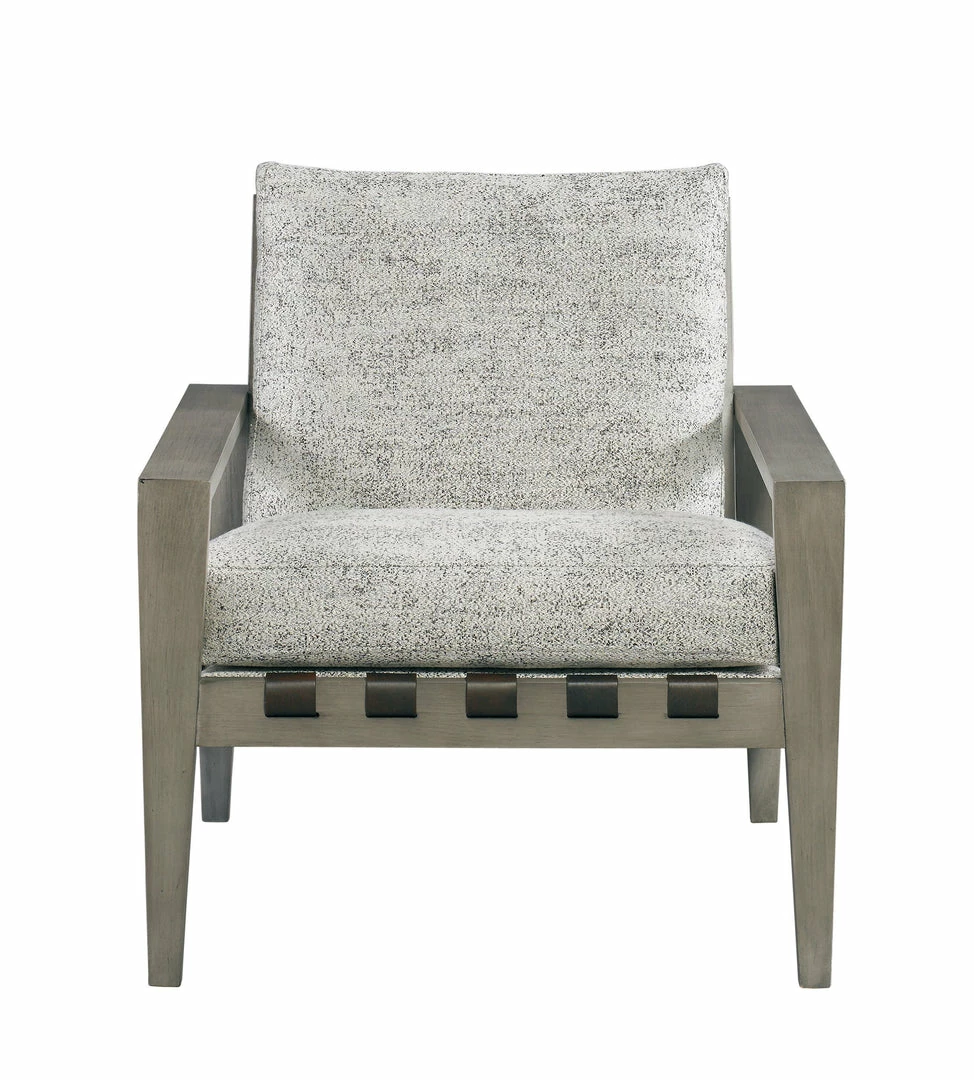 Both versatile and fashionable, the Lillian August Modern Living Mathew Chair is shown in an oasis ivory fabric and mineral finish.