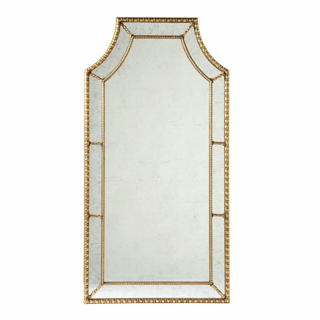 Vintage Gold finish with eglomise mirrored panel border and antique mirrored glass.