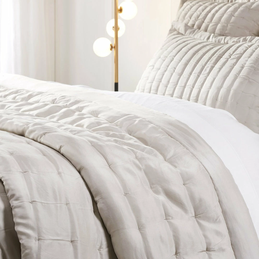 A timeless bedroom staple for a reason, the Sophia quilt is crafted from a 100% Silk and pure Cotton voile backing. Layer it over your favorite sheets or pair it with one of our bed throws for a contrasting look you’ll love. The Sophia is comfortable, super-soft and has that dash of vintage aesthetic. If your looking to add that sophisticated glamor quotient to your bedroom, we’ve got you covered.